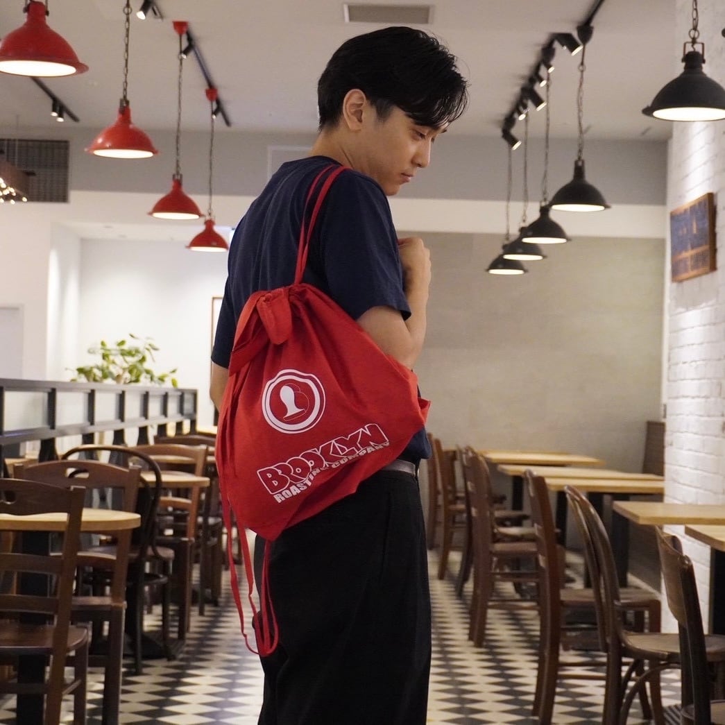 ビビッドな赤色に、白色のBrooklyn Roasting Companyのロゴが目を惹く
